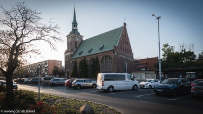 Kościół został zbudowany w miejscu dawnej drewnianej kaplicy szpitalnej, która istniała tutaj co najmniej do drugiej połowy XIV wieku. Ze względu na liczne pożary niszczące tę dzielnicę, świątynia była wielokrotnie przebudowywana. Szczególnie interesujące są nowoczesne, imponujące witraże od strony ulicy. W kościele św. Barbary przechowywano relikwie męczennicy z Nikomedii, które najprawdopodobniej trafiły na Pomorze za czasów księcia Świętopełka. Podczas wojny Gdańska ze Stefanem Batorym relikwiarz został przetopiony na monety, a ramię męczennicy przeniesiono do kościoła na Długich Ogrodach. Co się z nim później stało, pozostaje nieznane.