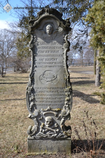 XVIII wieczna rokokowa stela z piaskowca należąca do Gerharta Bartscha, 1704–1777, sołtysa i starszego zwierzchnika kościoła w Sobieszewie. Stela ewangelicka przedstawia dużą wartość artystyczną, jest bogato dekorowana i posiada wiele symboli: czaszkę z piszczelami, ornament roślinny i głowę anioła.