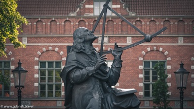 Monumento a Johannes Hevelius, astronomo, consigliere della Città Vecchia, birraio. Il suo autore è Jan Szczypka, insegnante dell'Accademia di Belle Arti di Danzica.